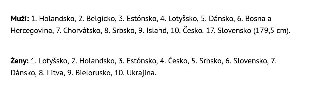 udajne najvyssie su Lotysky, muzi Holandania,a le ako primer co sa tyka oboch pohlavi, tak to ychadza na Holandanov.
