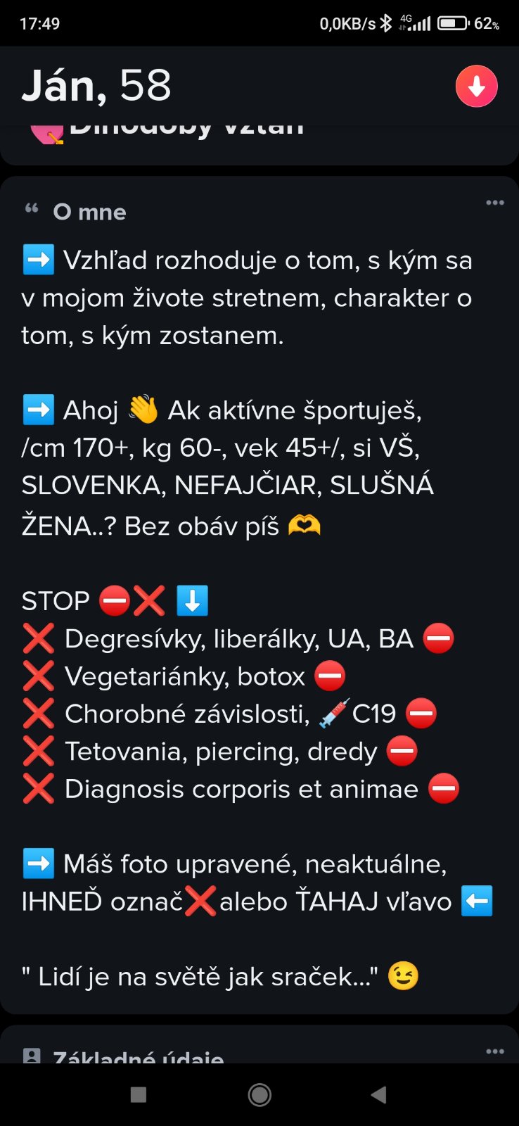 Screenshot reálneho inzerátu na Tinder