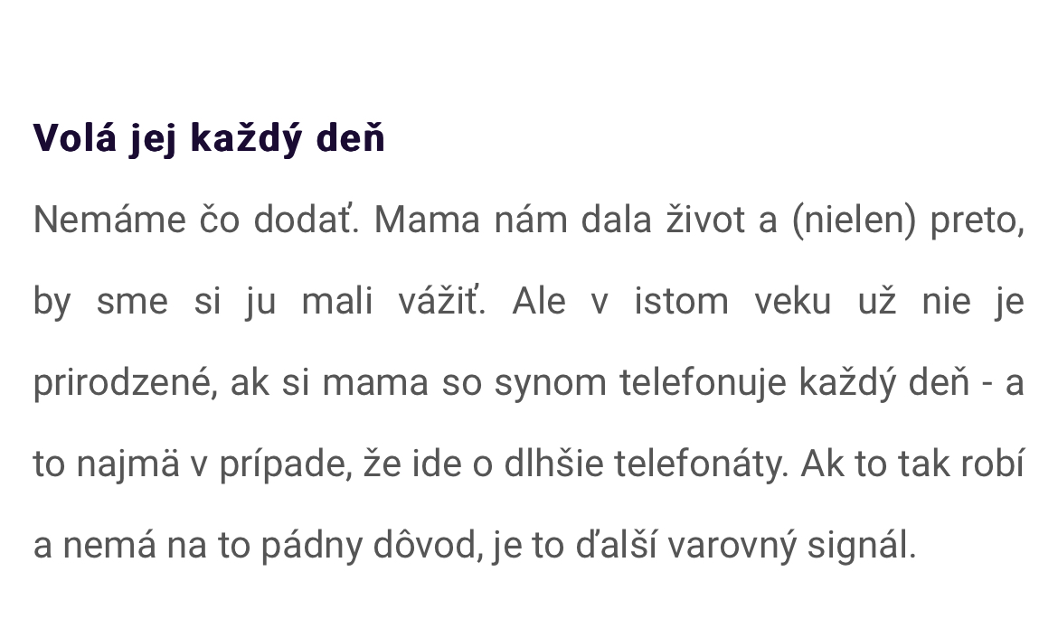 Kriste... 🤦ja volám s mamou každý večer, aj ona volavala svojmu otcovi, kým žil... Prečo sa každý deň svojho rodiča neopytat ako sa mal dnes? Či to až potom, keď tu nebude? 🤦