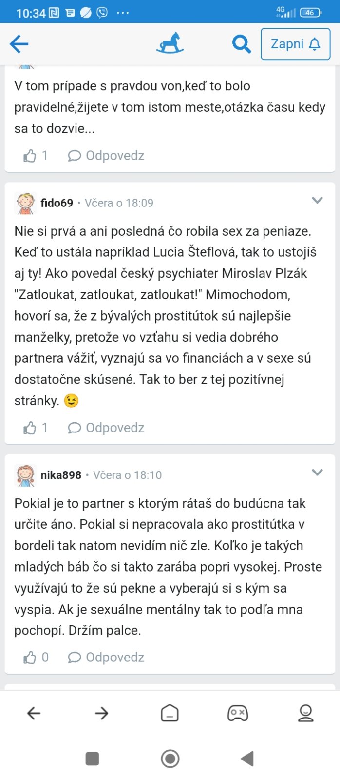 @demodun Noo veď to...si vezmi, že v inej diskusii...neviem, či nebola aj Ondrova 🤣 nepamätám, ženy písali, že by chceli vedieť, ak by ich potencionálny partner využíval služby prostitútok - platil za sex...ale tu jej radia zatĺkať...takže muž už nemusí vedieť, že žena, o ktorú má záujem dobrovoľne robila prostitútku? ...
