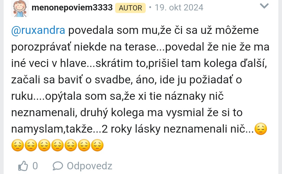 @ruxandra Akože už?! Veď on ju miluje už 4 roky! Čo si nečítala tie náznaky?! 🤣
