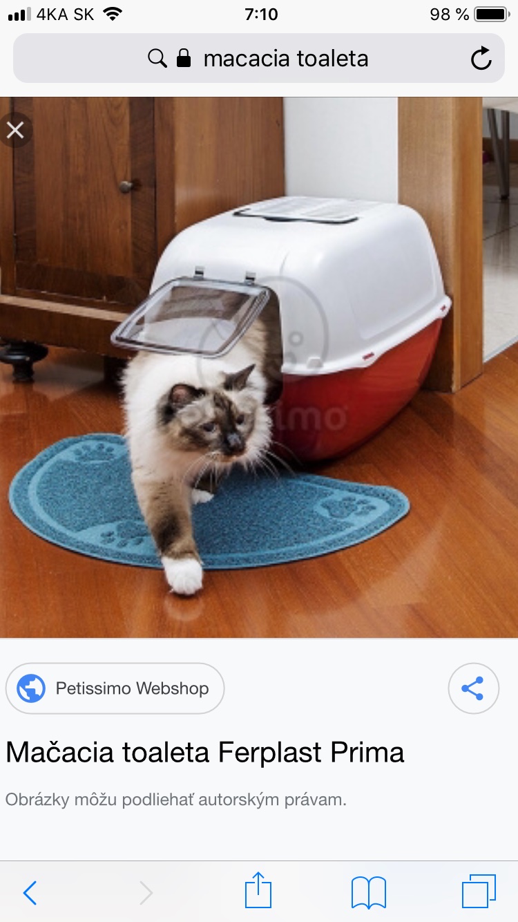 @ika02 no ale tá krytá toaleta funguje iba ak máš jednu mačku... čo pozerám aj reláciu kočka nie je pes, tak ak je mačiek viac, potrebujú priestor z ktorého môžu uniknúť, teda ak máš 3 mačky alebo viac, nepôjdu ti na tú krytú toaletu, budú radšej znečisťovať byt. Teda musíš mať otvorenú toaletu.
