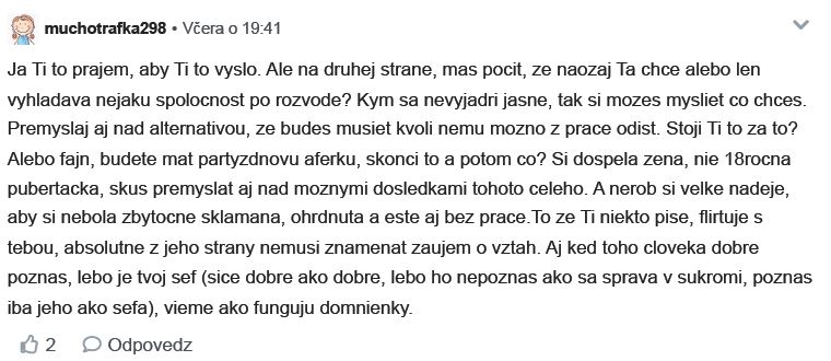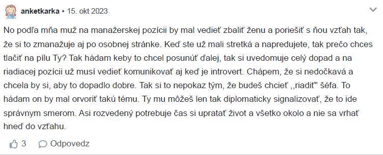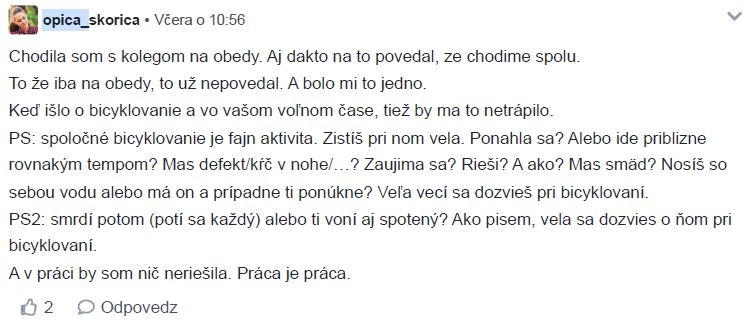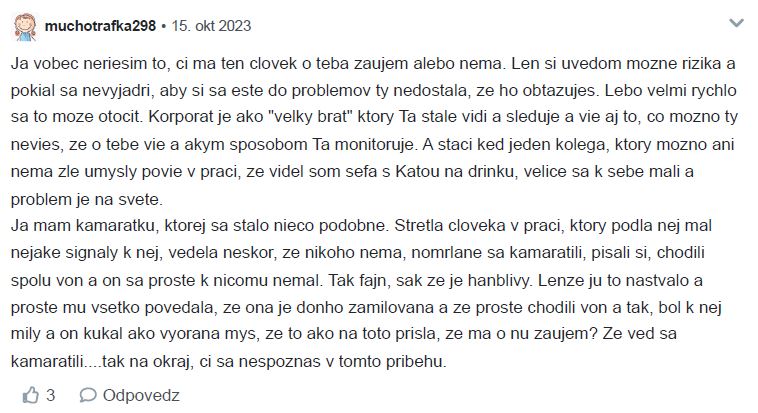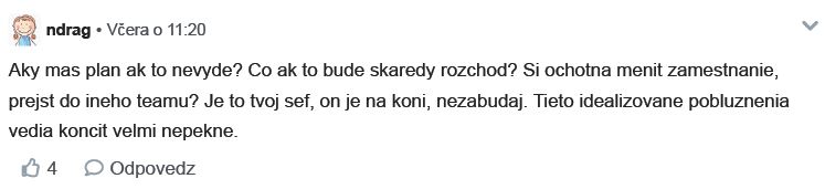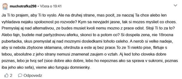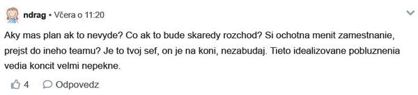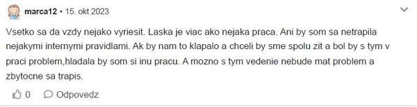 Diskusiu som zmazala lebo v nej bolo zopár osobných detailov a nechcela som aby verejná diskusia ohrozila postoj zamestnávateľa.