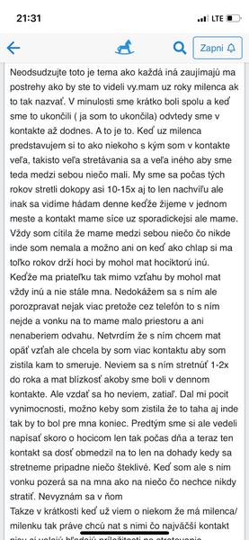 @katkami123 bolo to takto už viackrát ešte dávno som mu napísala ze som myslela ze sa uz neozve na co mi odpovedal ze sama dobre viem ze áno. Že si nevie vôbec predstaviť žeby nemalo byt nič. Myslím si ze je naladeny podobne ako ja, nechceli sme spolu vzťah ale tiež si nevedel predstaviť ze viac o mne nebude vedieť a celé toto skončí