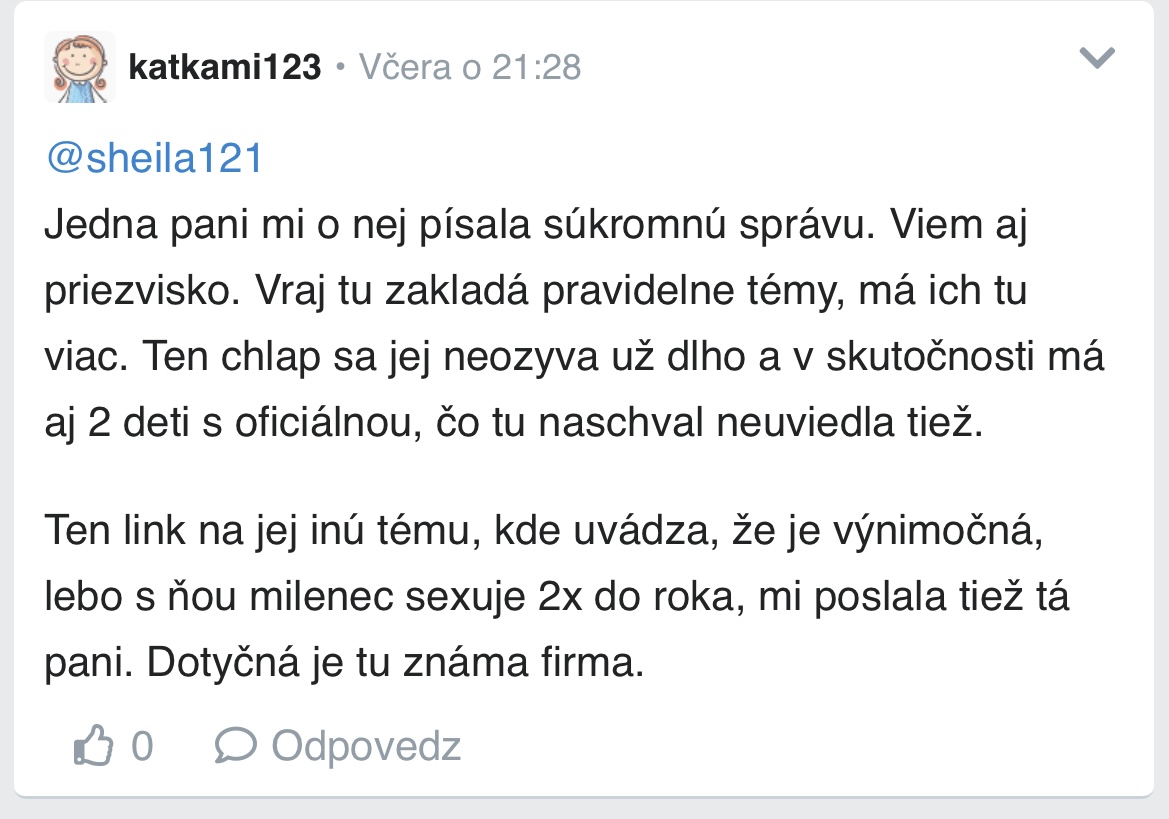 no ja len na margo toho, čo napísala @klementinka58, že niekto stalkuje ju, jej deti atď. . ak dobre viem, tak nikde sa deti autorky príspevku nespomínali.