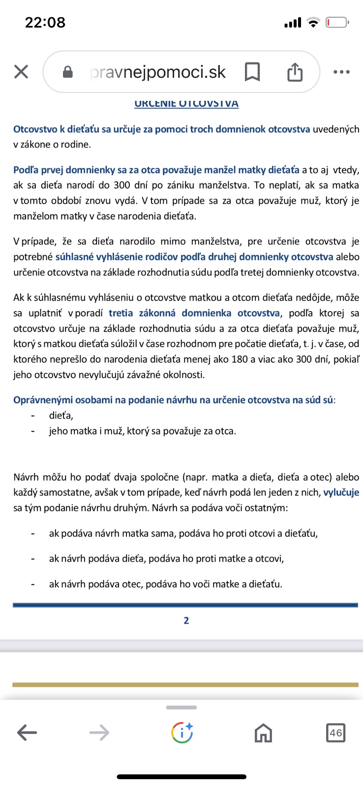 @betulinka1 Zákonná domienka hovorí :Otcovstvo k dieťaťu svedčí ,manželovy rodičky dieťaťa a .To znamená že otcovstvo môže zaprieť iba manžel rodičky a samotná matka dieťaťa .Iný muži toto otcovstvo spochybniť nemôžu ,iba ak by mali súhlas zapísaného otca v rod.liste ,alebo matky.