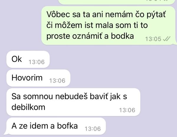 a dopíšem ešte jednu vec. autorka, napísala si časť svojho problému. my však nemôžeme tušiť, čo tomu predchádzalo, presne to v príspevku vystihla aj