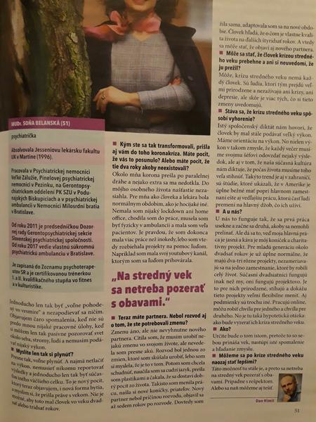 Casto tu o nej citam.V novom cisle casopisu Tema c.48 je na 4 strany vyborny clanok od psychiatricky Soni Belanskej znaky krizy, kedy nastupuje, koho postihne aj popisana jej osobnostna kriza jej rozvod a hladanie samej seba.Mam presne tie iste pocity asi by som sa mala k nej objednat🙂