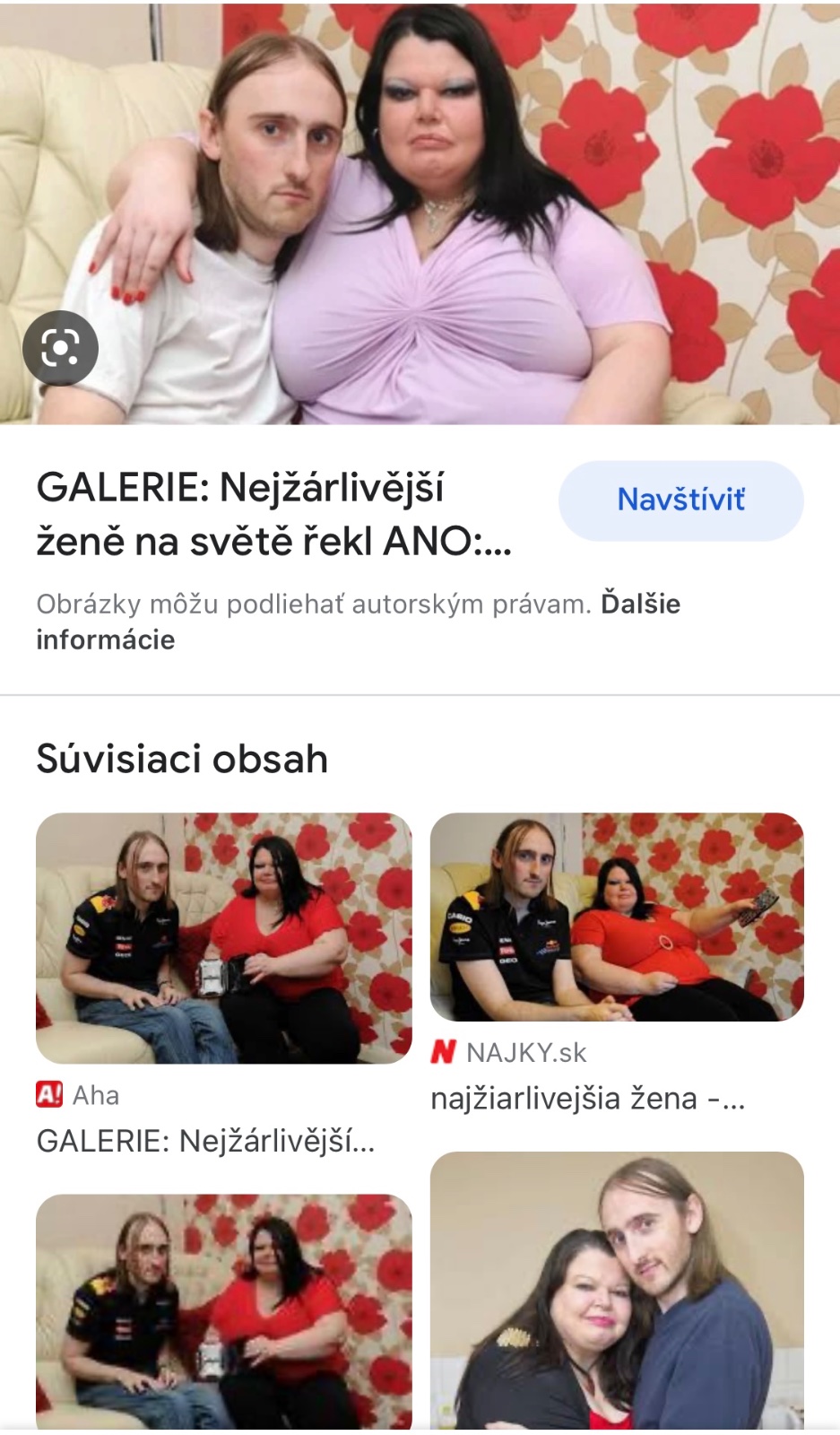Dúfam, lebo ja nemám čas, ze tu zeny prekopírujú tu tvoju tému a tie skvosty čo si v nej popísala. Áno, písala si, že budeš chlapovi stopovať čas z a do obchodu, pretože ťa môže podviesť aj na ceste do obchodu alebo z prace. A ďalšie perly. Ty nemáš žiadneho muža, co bolo zmieňovaný aj v inej téme. Ty si chorý človek, ktorý sťahuje fotky cudzích žien a potom na internete vypisuješ, ze si to ty. Chcela by si vyzerat tak ako ja 😉, potom by si sa nemusela klepať kedy ťa chlap podvedie.