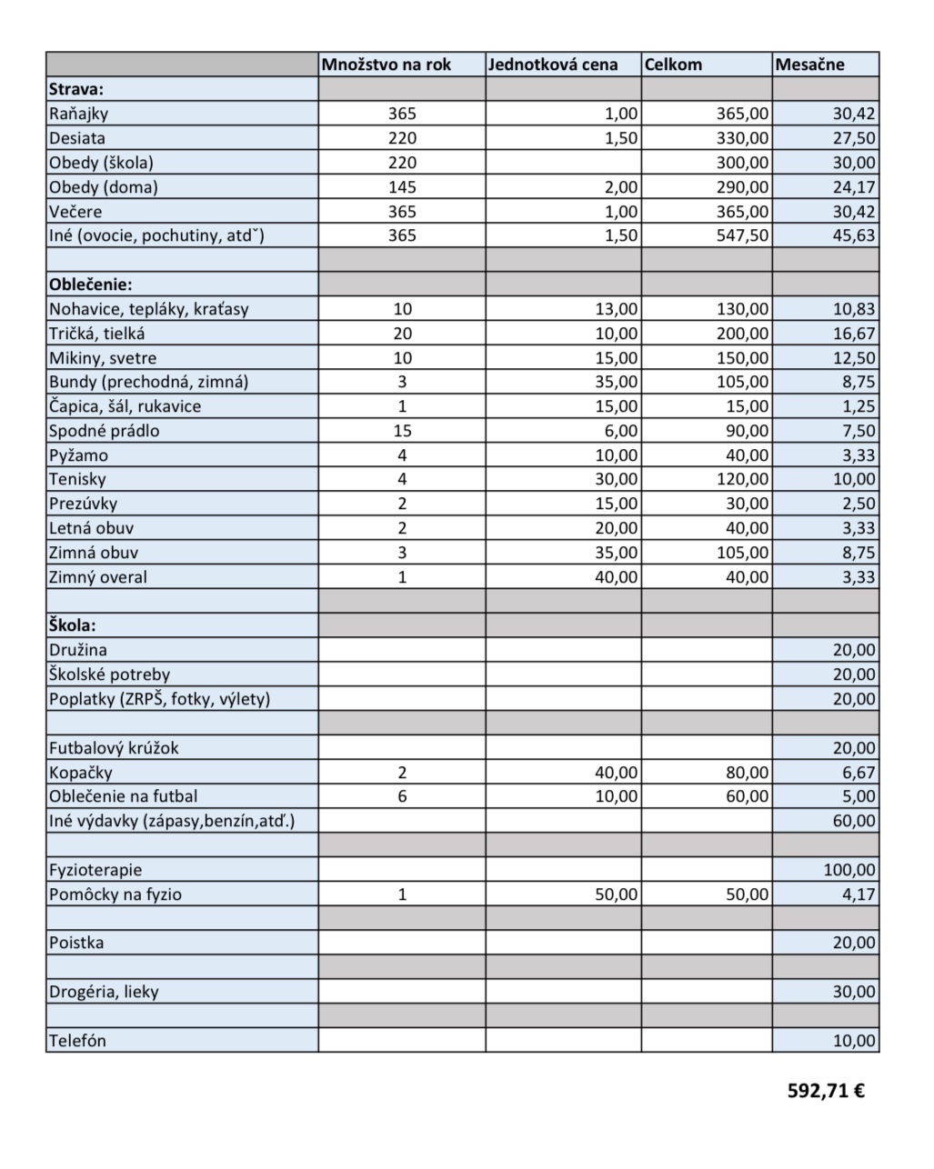 @babo_n ešte by ma zaujímalo, tieto položky si musela na súde aj dokladovať? Napríklad tu stravu, topánky a podobne?