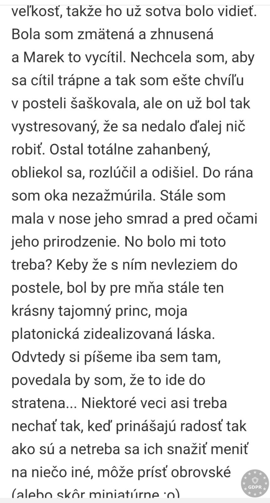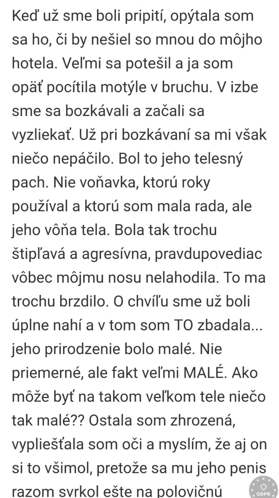 Žienky, cca pred vyše pol rokom som sa zoznámila s jedným mužom cez zoznamku. Písala som si s viacerými mužmi, ale tento jeden sa mi zdal iný, ako ostatní. A pravdepodobne iný je 🙄 Stretávali sme sa pravidelne, cez týždeň po večeroch, keďže obaja pracujeme a ja mám aj dieťa, cez víkendy aj počas dňa (dieťa mi postrážila mamina na tie 2-3 hodinky). Nechcela som ho s dieťaťom zoznamovať, pokiaľ si ním a vzťahom nebudem istá, čo je podľa mňa pochopiteľné. Chémia bola od začiatku neskutočná, iskrilo to na všetky strany. Dotyky, bozky, vzrušenie po pár týždňoch stretávania. Napišem to narovinu, chcela som sex. Myslela som si, že ako chlap sa k tomu postaví nejako, že niečo vymyslíme, aby ten sex bol. Ale z jeho strany som počúvala len samé nezmyselné výhovorky. Ja som mu priamo povedala, že som typ ženy, ktorá sex miluje a potrebuje to dosť často, aj každý deň, že u mňa neexistuje, že som unavená, že ma bolí hlava, že som chorá a iné výhovorky a že intimita je u mňa veľmi dôležitá, že ak to neklape v posteli, tak to pre mňa nemá význam😁 Povedal, že takú ženu hľadal. Aj som mu povedala, že ak ho to odrádza a nie je na rovnakej vlnovej dĺžke, tak to pochopím, ale že toto si treba vydiskutovať na začiatku, aby nikto vo vzťahu netrpel. U neho sa nedá, lebo býva momentálne u rodičov (po rozvode) a u mňa tiež nie, keďže ja som u maminy, tiež po rozvode (pomaha mi s dieťaťom a byvanie si chcem zabezpečiť s budúcim partnerom). Ale keďže podnikám a financie mi nechýbajú, navrhal som xyz krát, že môžme ísť do hotela a zaplatím (raz mi na to povedal, že jemu sa zdá veľa 60€ za hotel - pohoda, nemusí platiť), tak vraj že pôjdeme na polovicu, vravím ok, hotel som zabezpečila, zaplatila, všetko dohodnuté, prišiel deň D a on sa znova vyhovoril. Hotel sa už zrušiť nedal 🙄 N3viem, čo di o tom myslieť. Napísala som mu len, že nevidím
