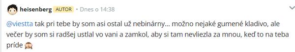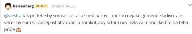 @heisenberg To, že si ten príspevok zmazal, ešte neznamená, že sa nenájdu dobrí ľudia, ktorí mi do súkromnej správy napíšu, o čom to bolo.