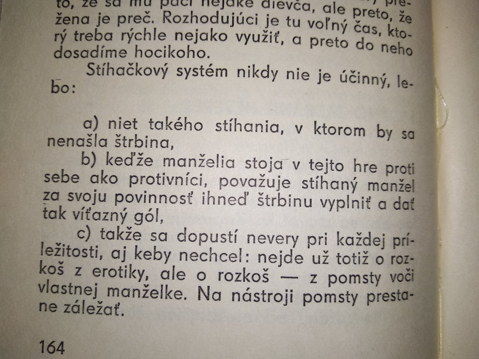 @h2 obhájil by si to tým, že on len nemal na to gule, že s ňou ostaval len kvôli deťom. Veď tak to býva - ten kto ma milenca, má výčitky opustiť svoju polovičku a keď nakoniec dostane kopačky, je to pre neho vykúpenie. Odchádza bez výčitiek. Predsa nie je on ten, čo opúšťa rodinu, ale ten, čo ho žena vyhodila. Nakoniec ešte on bude za chudáka.