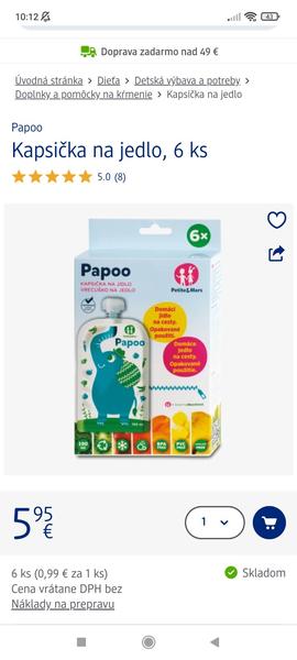 Robíme doma výživu z nášho ovocia a to mu potom dávam do tej kapsicky, čo je znovu použiteľná. Ale často dostávame aj kupované kapsicky a áno, dám mu to sem-tam.