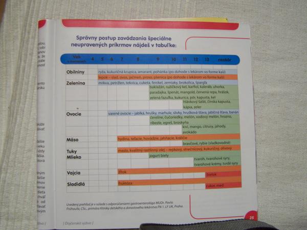 no dalsia rovnaka temicka 🙂 zelenina, masko, ovocie... zacinali sme mrkva, mrkva-zemiak, zemiak, kalerab... a pod. potom som po cca 10-14dnoch pridala masko (kuracie, morcacie, kralicie, telacie, nakoniec hovadzie vo vyssiom mesiaci). Tabulku som mala z Dietata asi alebo z Maminky? A potom som sa riadila Bukovskym Hned to bude anjelik a este jednou jeho knihou 🙂)) a prezili sme to v zdravi 🙂))