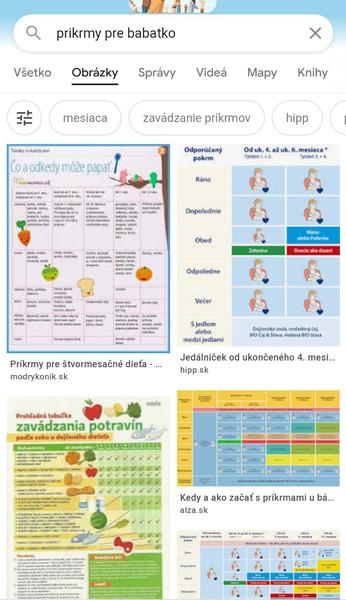 @diana999 Ahoj, googlila som a nejaké tabuľky, odporúčania, postupy som našla. Ale dieťa mi podľa nich nejedlo. Vypľúval a zase niektoré mu chutí tak, že otváral pusu a predklonil sa za lyžičkou sám. V jednej knihe som našla aj článok o tom, že nám na by mala byť vytrvalá a dôsledná, ale nie tak, že by dieťa do jedla nútila alebo trestala ho za nejedenie, že si ku jedlu takým spôsobom vytvorí odpor. Riadim sa teda aj tým, čo ma bábätko rado.