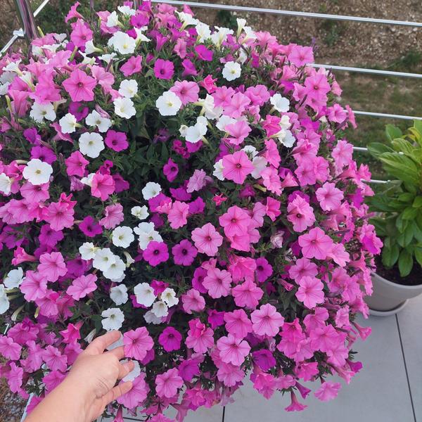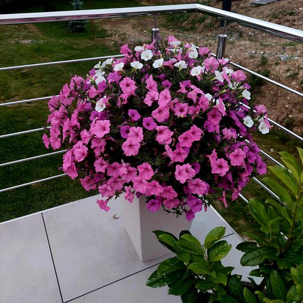 Ja by som ich dala do polotieňa a ostrihala. Tie vrcholce by som zostrihla 5-7 cm. A pohnojila. Ak chceš ťahavé kvety na slnečnej strane kde ti aj zmoknú. Zvoľ budúci rok radšej odrodu supertunia vista. Tie sú odolné voči dažďu, vetru, slnku. Len ich musíš aspoň 1x za leto ostrihať. Tieto mám ja na terase sú to 3 sadenice. Takto postupne kvitli