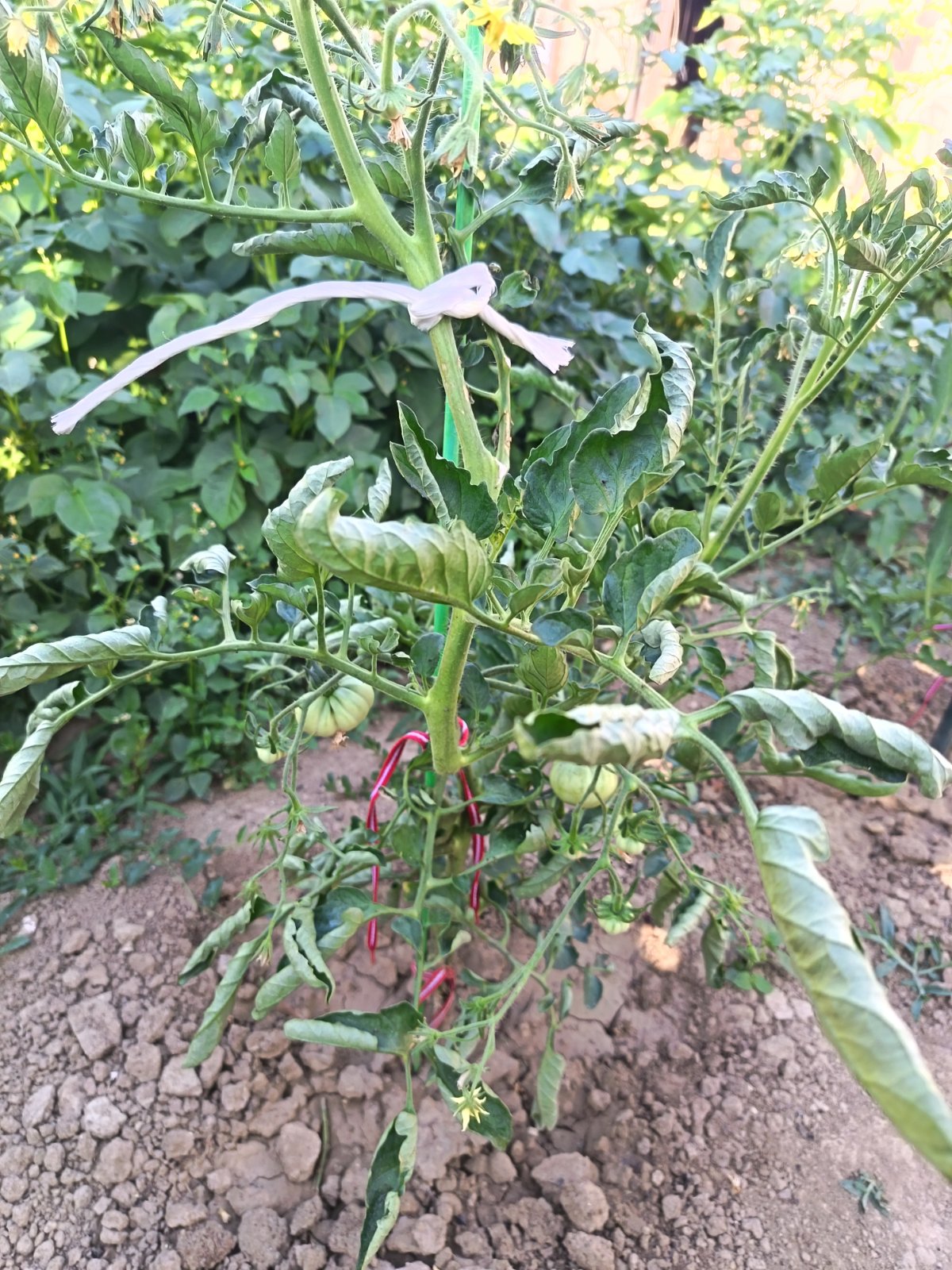 Majú málo vápnika, ale málo ho majú preto, že nepolievaš, nedokážu si ho zobrať z pôdy. Čo sa týka paradajok, tie škvrny na špičke sú kvôli nedostatku vápnika, tie na boku sú kvôli tomu, že máš takú odrodu paradajok. Takže začnú polievať ku koreňom a vyriešiš oba problémy..