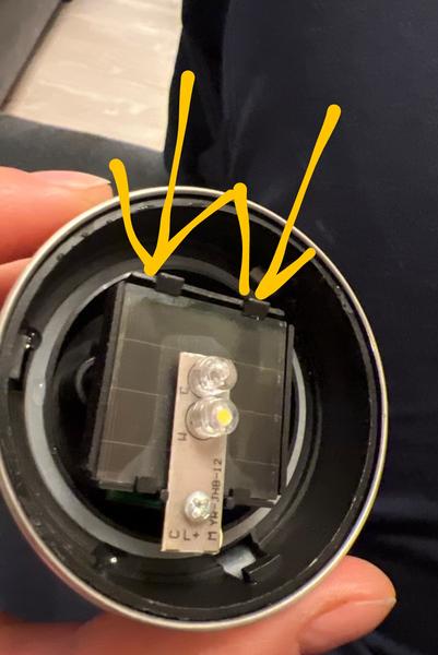 Skus skontrolovat baterku,mala by byt pod solarnym panelom.Zatlac, tie plastove zapadky smerom von,vyber ho a dostanes sa k baterke.
