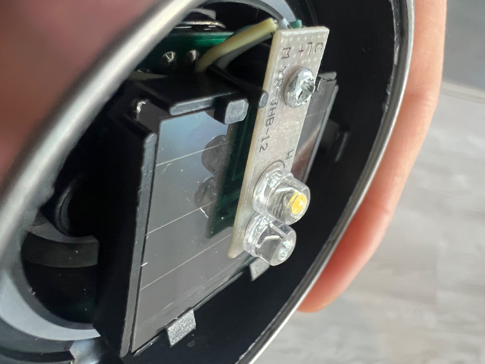 Skus skontrolovat baterku,mala by byt pod solarnym panelom.Zatlac, tie plastove zapadky smerom von,vyber ho a dostanes sa k baterke.