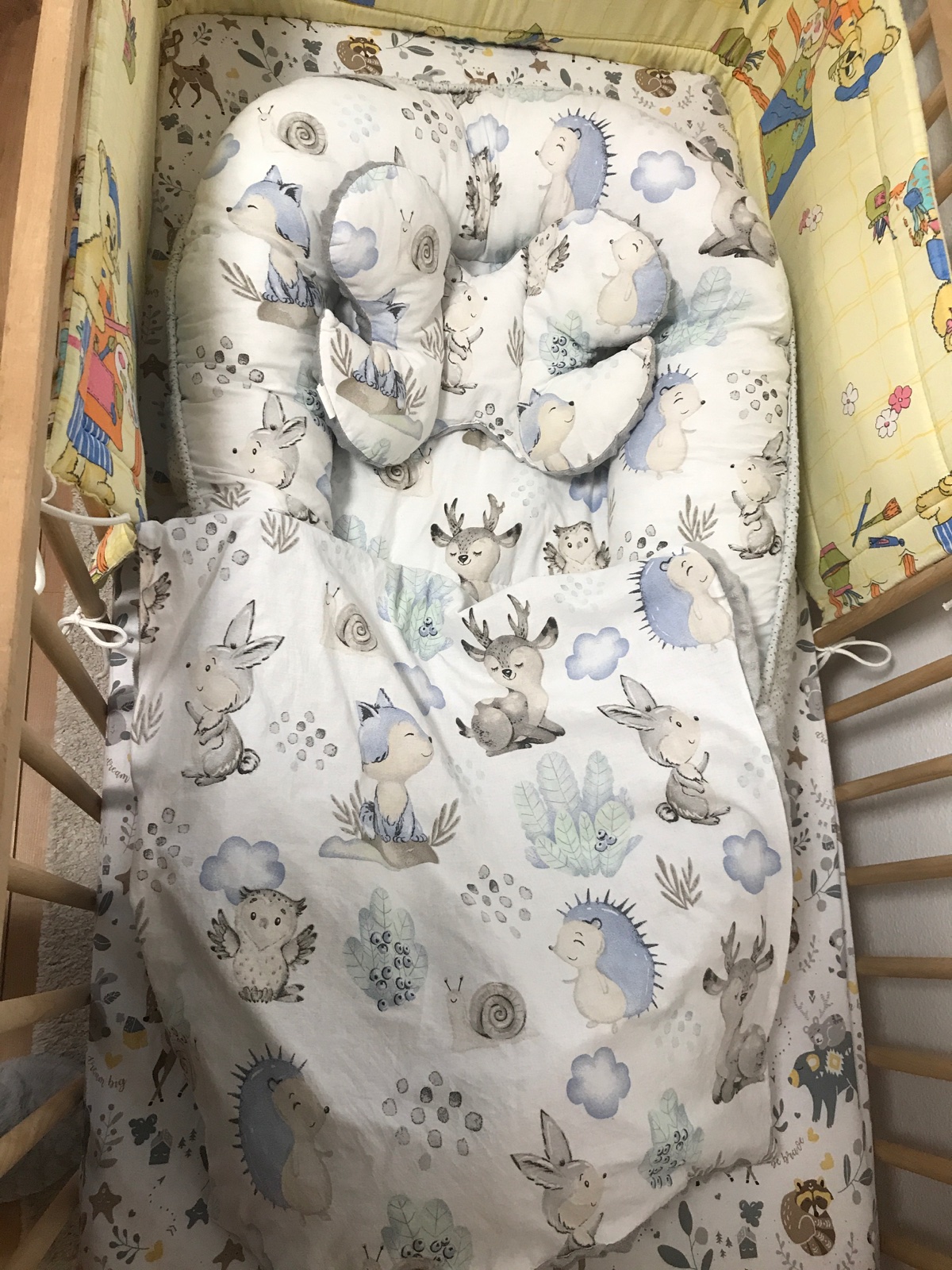 Az ma bolia oci z tych vzorov a farieb. Tam by sa mi veru dobre nespalo. Mala som hniezdo, drzalo babo ked som ho otocila na bok. Ked sa pretacal dala som prec. Mame aj mantinely, od steny ide chlad a nepadaju cumle stale