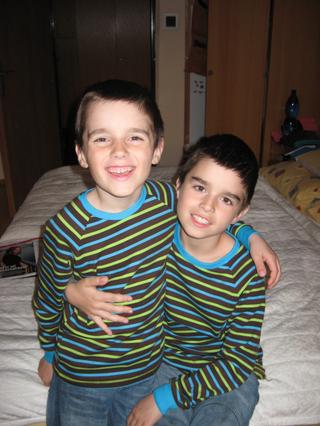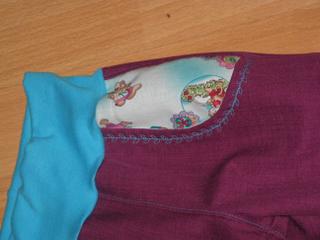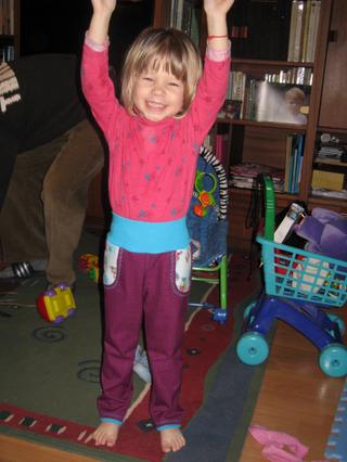 Moje počiny těchto dní jsou tričko s kotvou pro mě (už jsem tu dala fotku toho, co jsem šila ségře, tak jsem to moje nefotila, jsou stejné), pyžamko pro berušku a lamovou mikču. S tou jsem se pěkně nasrala, střih je podle Ottobre a zřejmě tam byl vysoký límec na ohrnutí, nevím, na fotce přes to měla holčička šálu a nebylo nic vidět. Tak jsem ho zkrátila, ale i tak seděl divně a hrozně trčel od krku. Měla jsem sto chutí to vyhodit oknem, ale nakonec jsem to jakž takž spravila. Aplikaci jakési pěticípé protěže 🙂 jsem olemovala vlnovkou podle Caramilly a vypadá to super.