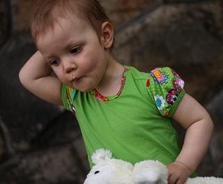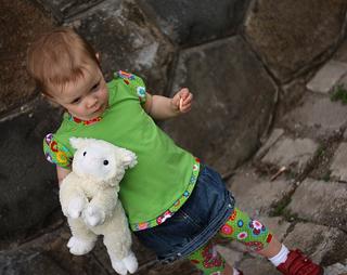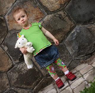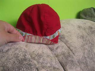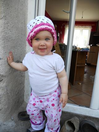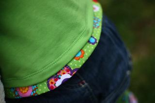 tak a moje foto té vestičky a dneska jsem místo kšiltovky spíchla podle střihu z burdy klobouček-hadráček, neměla jsem doma vlizelín ani jinou pěknou a hlavně pevnější látku, takže je to prostě hadráček 😀 a jen tak pro pobavení, materiál je nějaká košilovina z mojí staré pracovní košila (před 10 lety jsem pracovala v mekáči a košili jsem jaksi zapomněla vrátit 😅 )