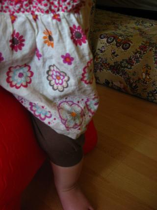 Tak já jak ušila ty původní 3/4 legíny, tak tý mojí cácoře byly velký, takže jsem jí je dneska ustříhla 🙂 a jí se to děsně líbílo - to stříhání, nechápu 🙂