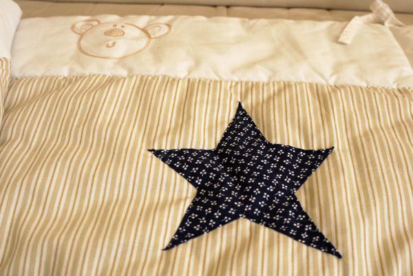 tak já dneska dodělala ty věci pro kámošku... mantinel do postýlky předtím a potom s hvězdami (ta barevná kombinace se mi vůbec nelíbí, ani ten vzor na té látce co jsou z ní hvězdy, ale když to tak chtěla, má to mít 😅 ), přišívala jsem je ručně, páč s kráčející patkou mi to moc nešlo a navíc to vypadalo blbě, jak to bylo z druhý strany prošitý 😝 takže teď je to přišitý jen zepředu a vzadu je to v původním stavu 🙂 bryndák originál modrý Lindexový a vedle hvězdičkový je můj výtvor (pajcnutý 😀 ) a pak ještě tričko, ale to jsem nefotila, páč jsem tam jen našívala krajku, aby se zakryly pidi dírečky a to triko se mi nelíbí, ani ten materiál, tak proto 😅