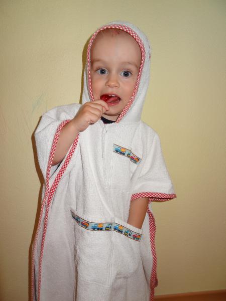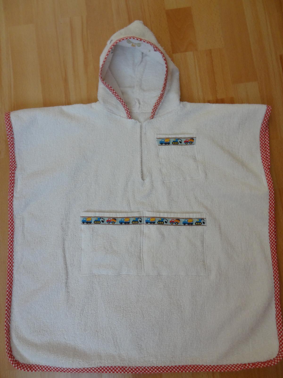 Ahojte 🙂, pravidelne Vás čítam, no nejak som nemala čo pridať. Dnes som ale prešila z bábenského uteráku z Ikea malému recyklo- pončo na pláž. Použila som autíčovú stužku, tak je Miško nadšený. Akurát musím kúpiť cvoky a jeden tam ku krku nabiť 🙂 Tak pridávam foto (modela som musela uplatiť lízatkom 😀)
