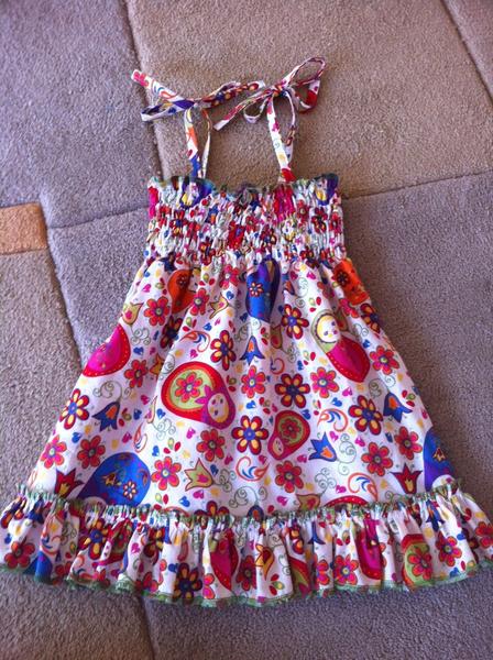Dobré ráno, přikládám žabičkované šatičky. Byly raz dva, když nepočítám párání a zkracování, neboť jsem se napoprvé jaksi sekla s délkou a byly skoro ke kotníkům 😀 . Jen se musím zeptat opraváře, jestli můžu do svého stroje použít kovovou cívku, protože mi při navíjení gumičky prdly dvě plastovky a skoro mě z toho jeblo 🙂 .
