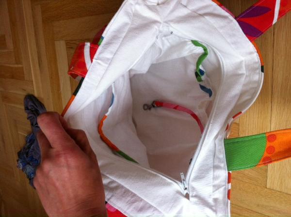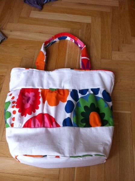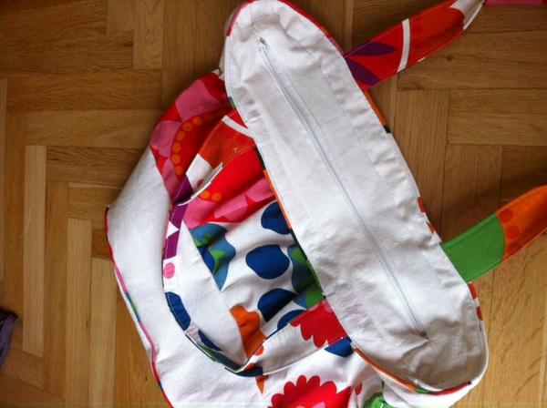 Taška pro mamku, už jsem šila podobnou ségře. Nevím, jestli je to dobře vidět, ale je na zip a uvnitř je velká kapsa, dvě malé a karabinka na klíče.