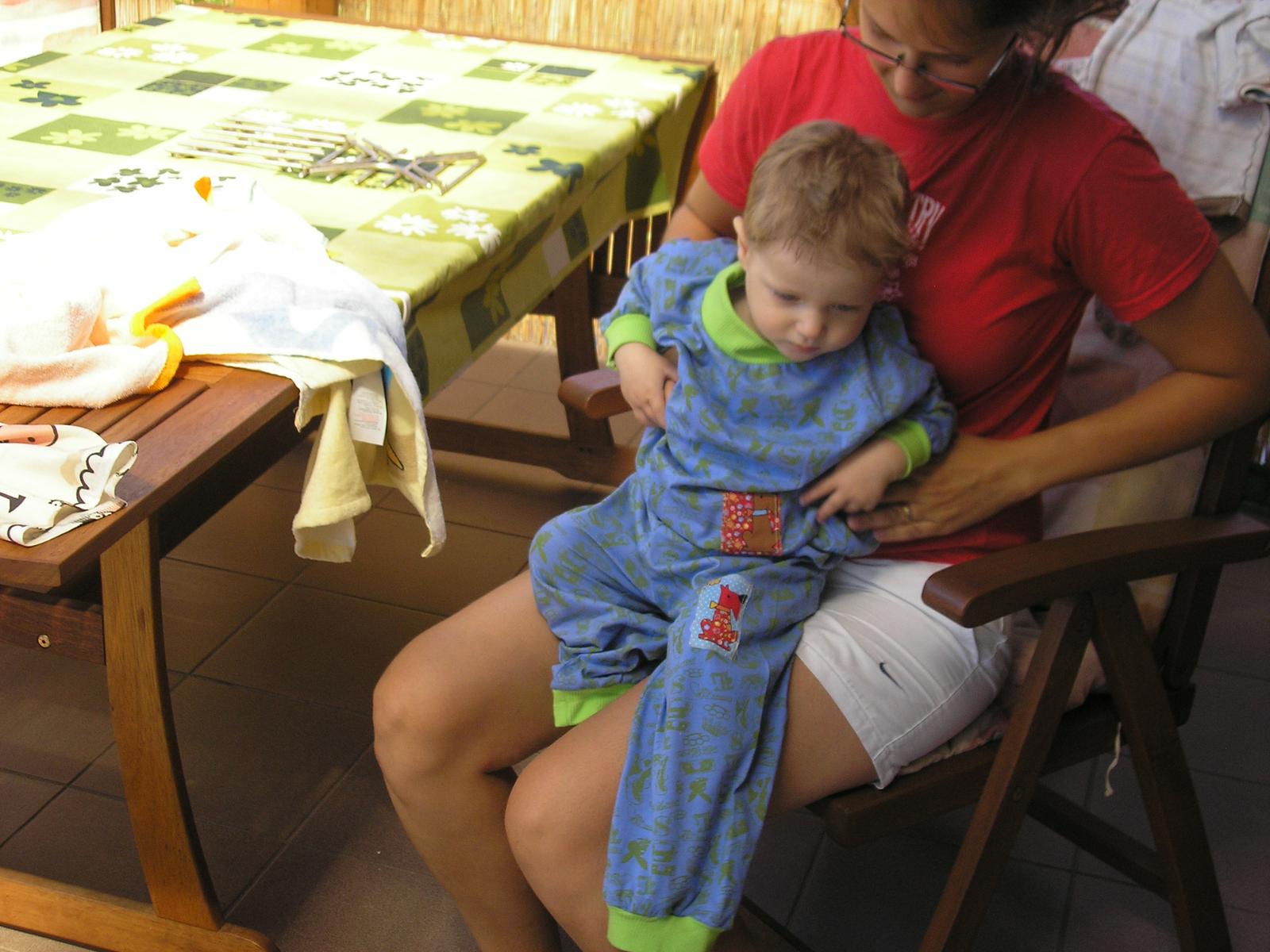 Takže k fotkám: pruhaté kraťasy z látek z MTX, triko z modrých vaflí, v kraťasech z vaflí a triku z látek z MTX mi dneska model usnul, takže fotka "v akci" 🙂 Látku na žirafko-zebří povlečení jsem ulovila minulý týden na MMB, měla ohromný úspěch 🙂) A pak tři sukýnky na focení do ateliéru, trvalo mi rok než jsem přišla na to, jak na ně, takže o to větší z nich mám radost a mám v plánu ještě další barvy.