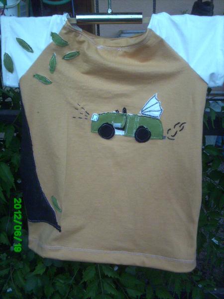 dnešní triko pro Matyho pořád chce auta a já bych tááák ráda šila něco jiného 😀 u krku to budu muset přešít nějak mi to odstává ale nejdřív mu to zkusím jak to bude vypadat a pak teprve přešiju jo a kdyby jste náhodou nepoznali co to je nalevo tak je to strom 😀 😀 😀 😀 😀 a prý chce ještě řidiče ale to už asi vážně nedám 😝 😝
