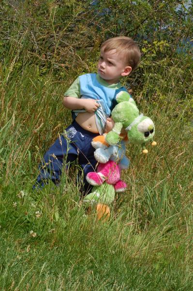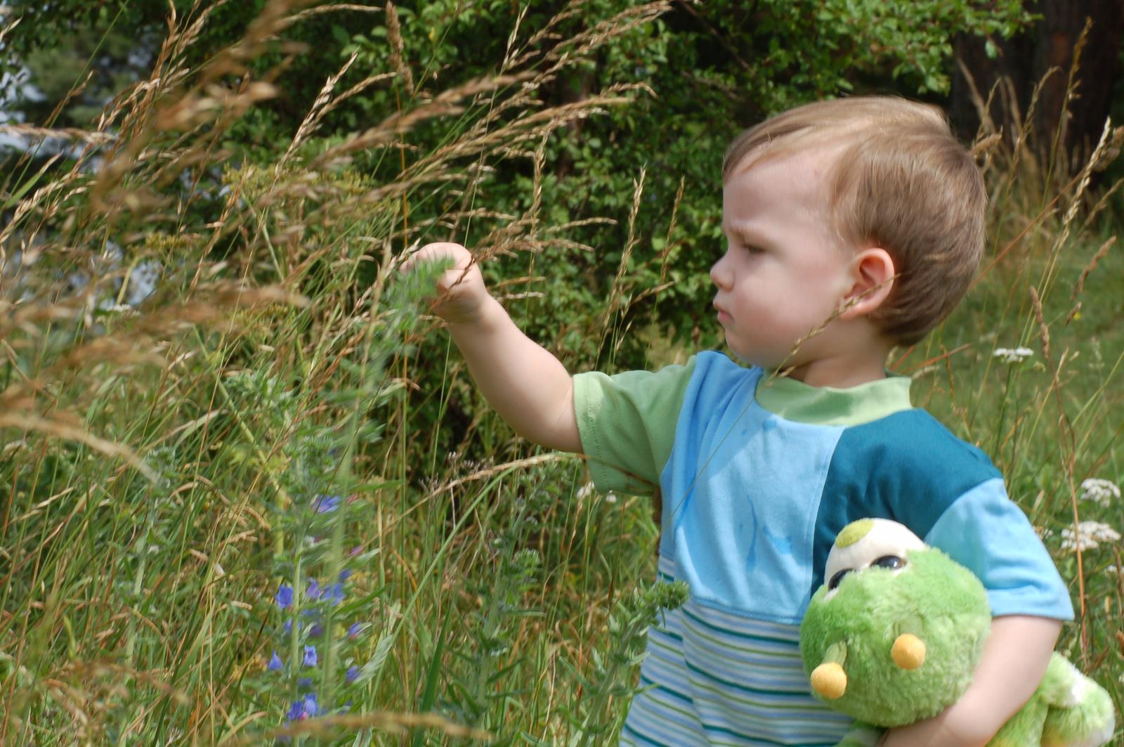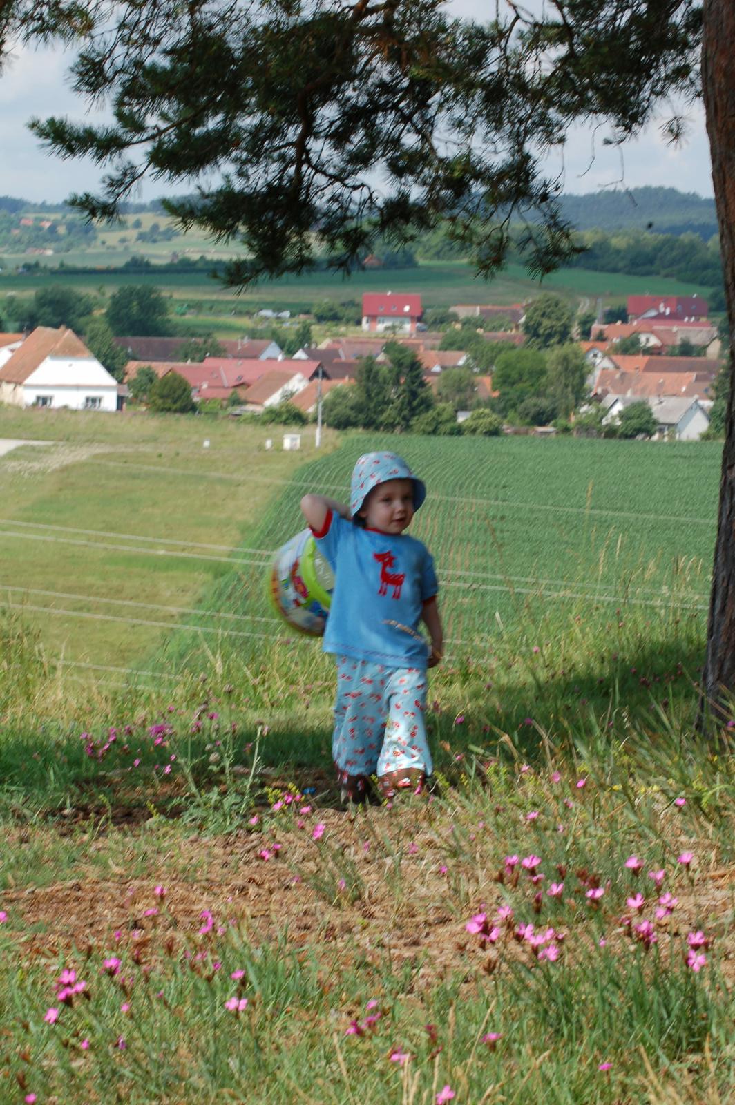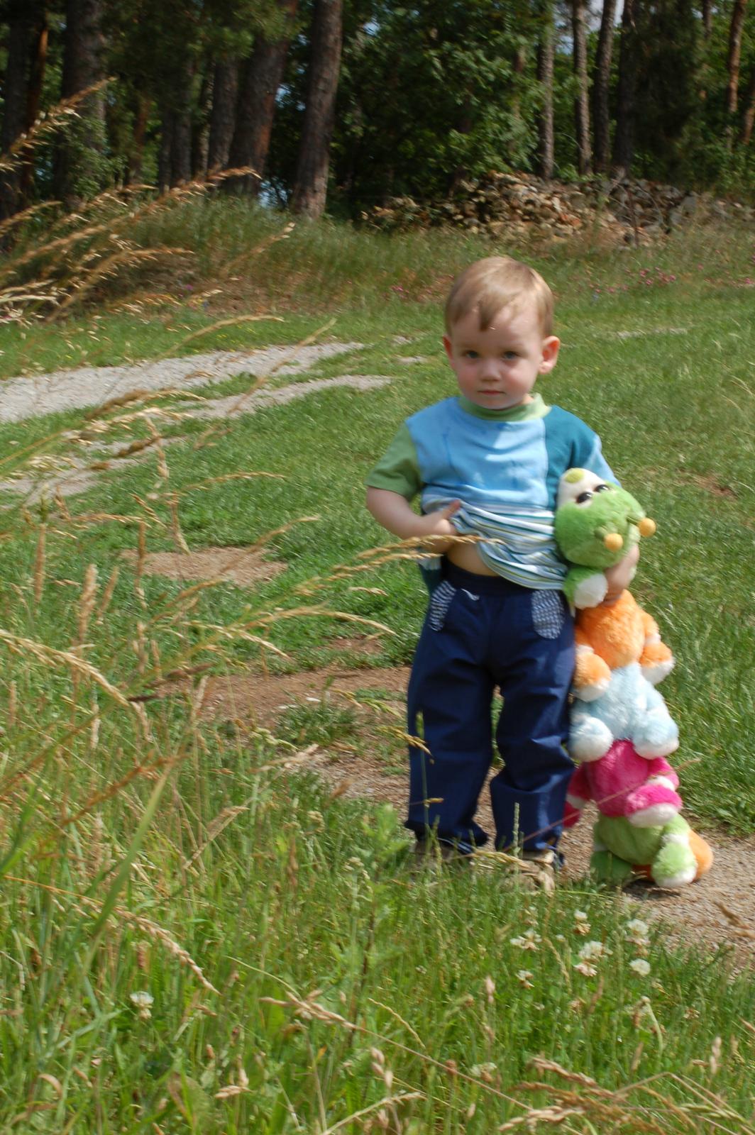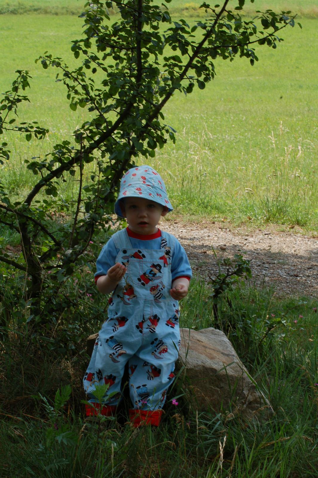 Ten houbičkový klobouček mu už je menší, tak musím ušít nový houbový, protože to je první věc, kterou nechce dát z hlavy a vybírá si.