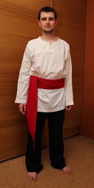 tepláky jsou pro babičku a na poslední fotce je manžel v kostýmu na fantasy víkendovku - kalhoty jsou ze sekáče, šerpu kolem pasu jsem šila teď a košili už loni (totálně bez střihu a totálně blbě, ale funguje a to je hlavní 😀 )