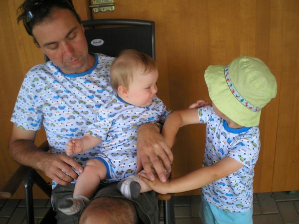 @katka82 tý jo, tak autíčková haluz dobrá, obdivuju tvýho chlapa. můj by se do toho nenavlékl ani jako do pyžama a ještě stejné triko s dětmi, to by teda fakt protestoval 😀