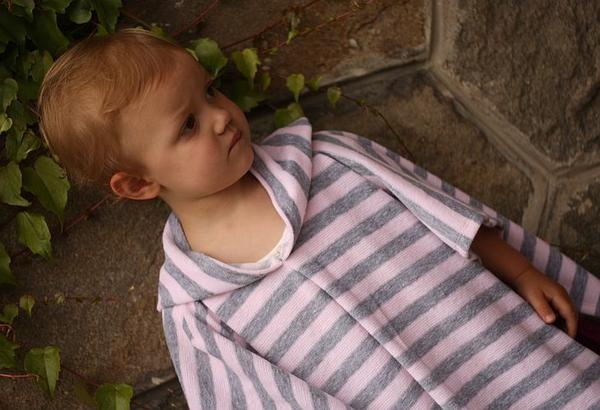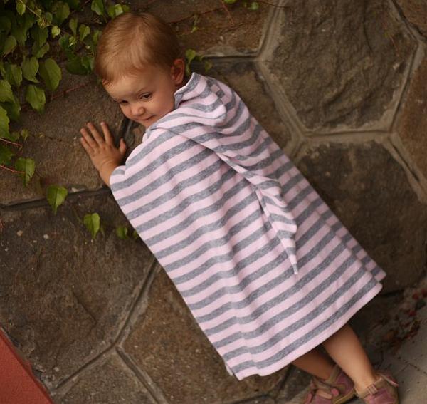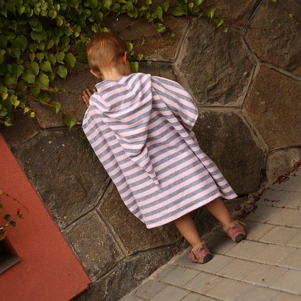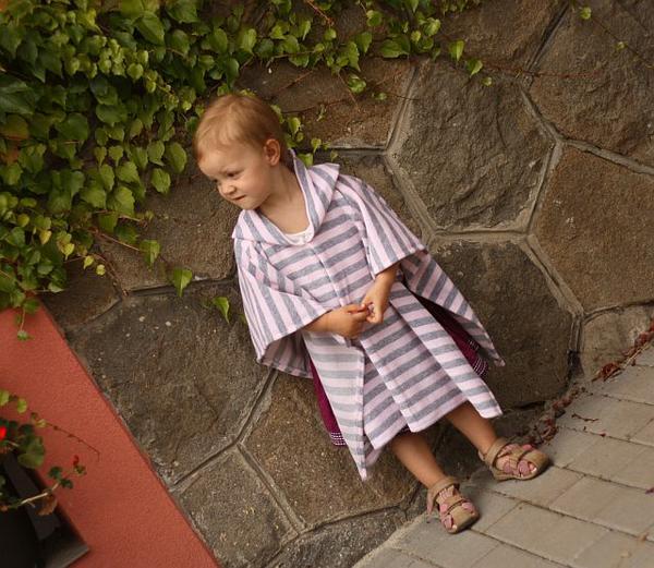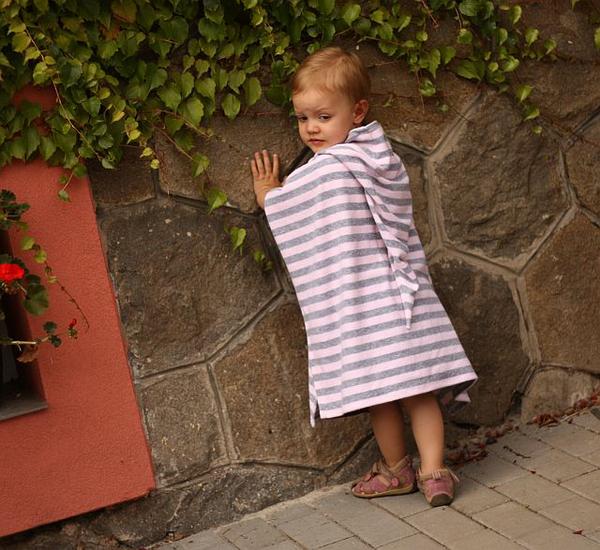 Dneska teda nejsem moc kreativní. Ale jen pelerinka, co jsem šila kvůli fotonávodu na blog z froté, co mi dala @terezita. A nakonec se mi to froté takto docela i líbí, kombinace šedé a světle růžové je moc hezká a ta kapucka z pruhů je taky hezká 😉 A hodilo se mi, že to bylo "kus froté k ničemu" 😀 Takže, Terez, díky!