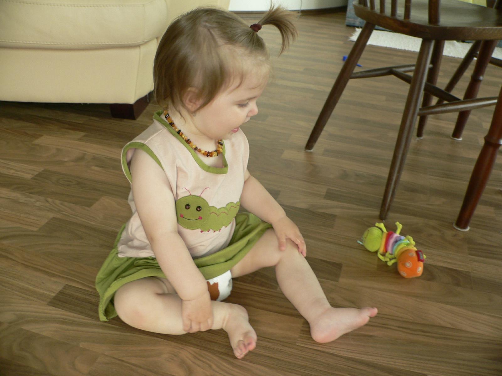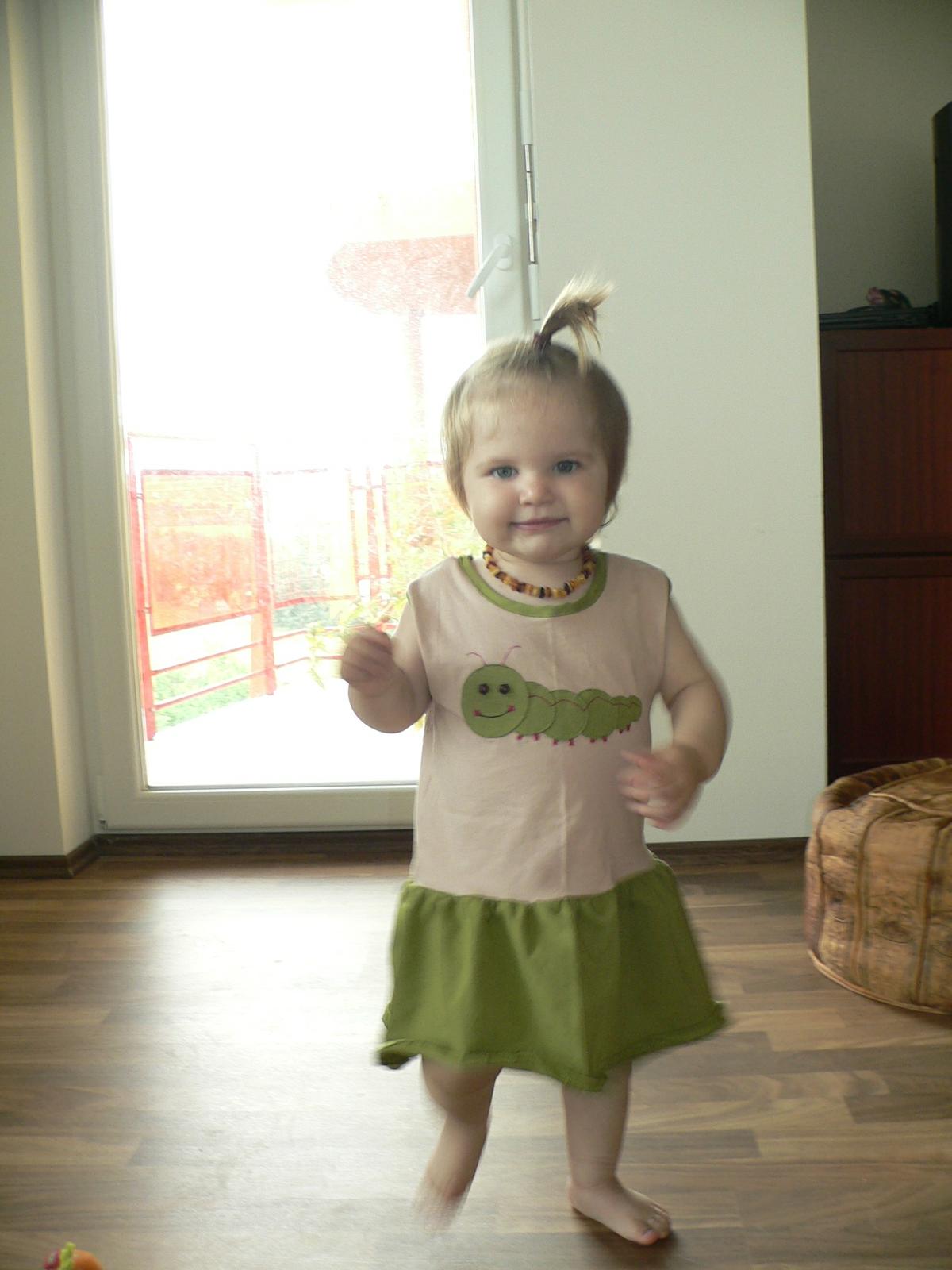 Tak ja len tak poskromne, housenkové šatičky. Modelka ale moc nespolupracovala.