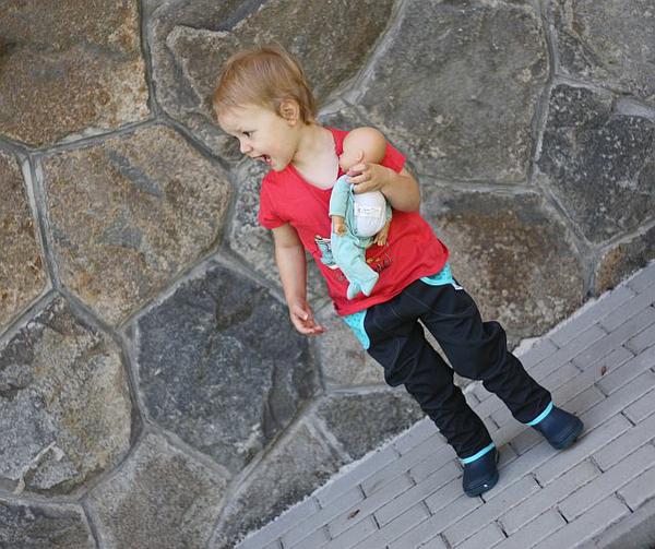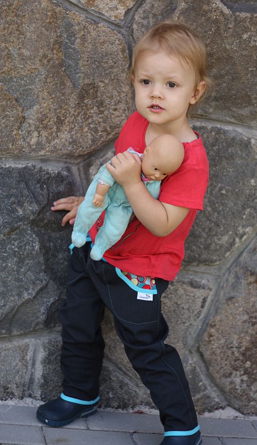 Softové kalhoty a chudák dneska několikrát převlíkaná modelka. Ale modelka na molu je boží 😀 Fotky dávám kvůli Jasmínce, kalhoty nic novýho pod sluncem, samozřejmě. Jen, že ta černá kalhotovina (mám prvně na zkoušku) je boží, je to krásný antracitový odstín a není tam vidět moc to žíhání, které nemám ráda. A slušivá je ta barvička. Akorát jsem se zaradovala, že tentokrát tam nejsou ty hnusný 10 cm okraje, co se oddělují ty vrstvy a tak jsem střihla z přeložené látky nadšeně až do kraje a až ve finální fázi šití jsem si všimla, že tam jsou dírky! Jako vůbec to totiž není vidět, jen pod určitým úhlem světla, tak pozor na to!!!