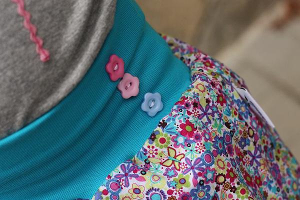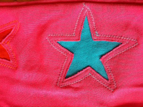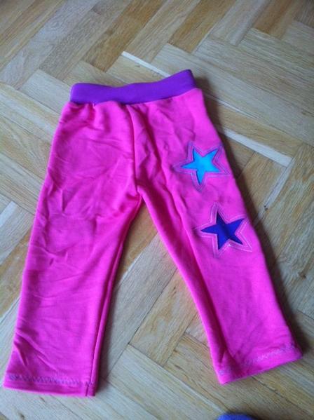 @crawler nene, nepodhrnovala 🙂 ta kontrastní látka je našitá zespodu a pak je to prostřihnuté. Vypráním se to asi trochu otřepí, ale myslím, že to tomu dodá ten správný šmrnc. Postup je na http://www.farbenmix.de/de/negativ-applikatione..., akorát nemám ten stickvlies, tak jsem to namalovala křídou přímo na ty tepláky.