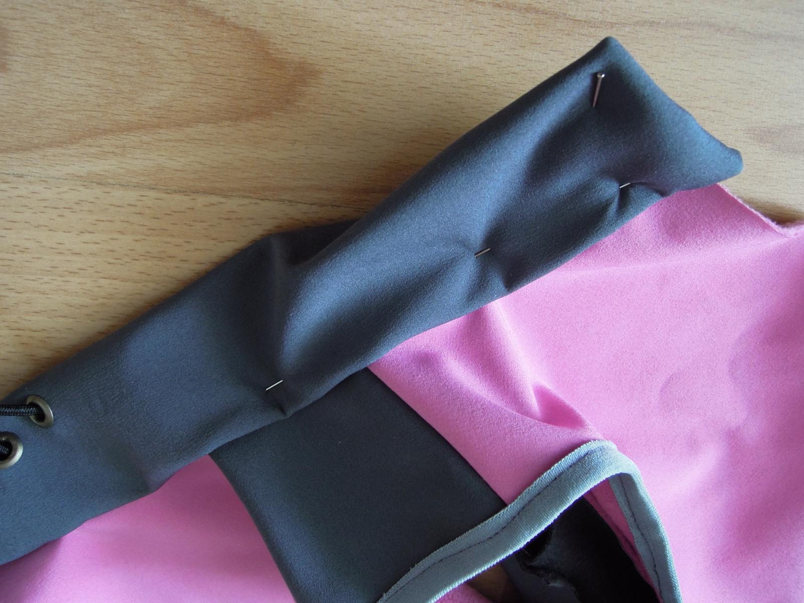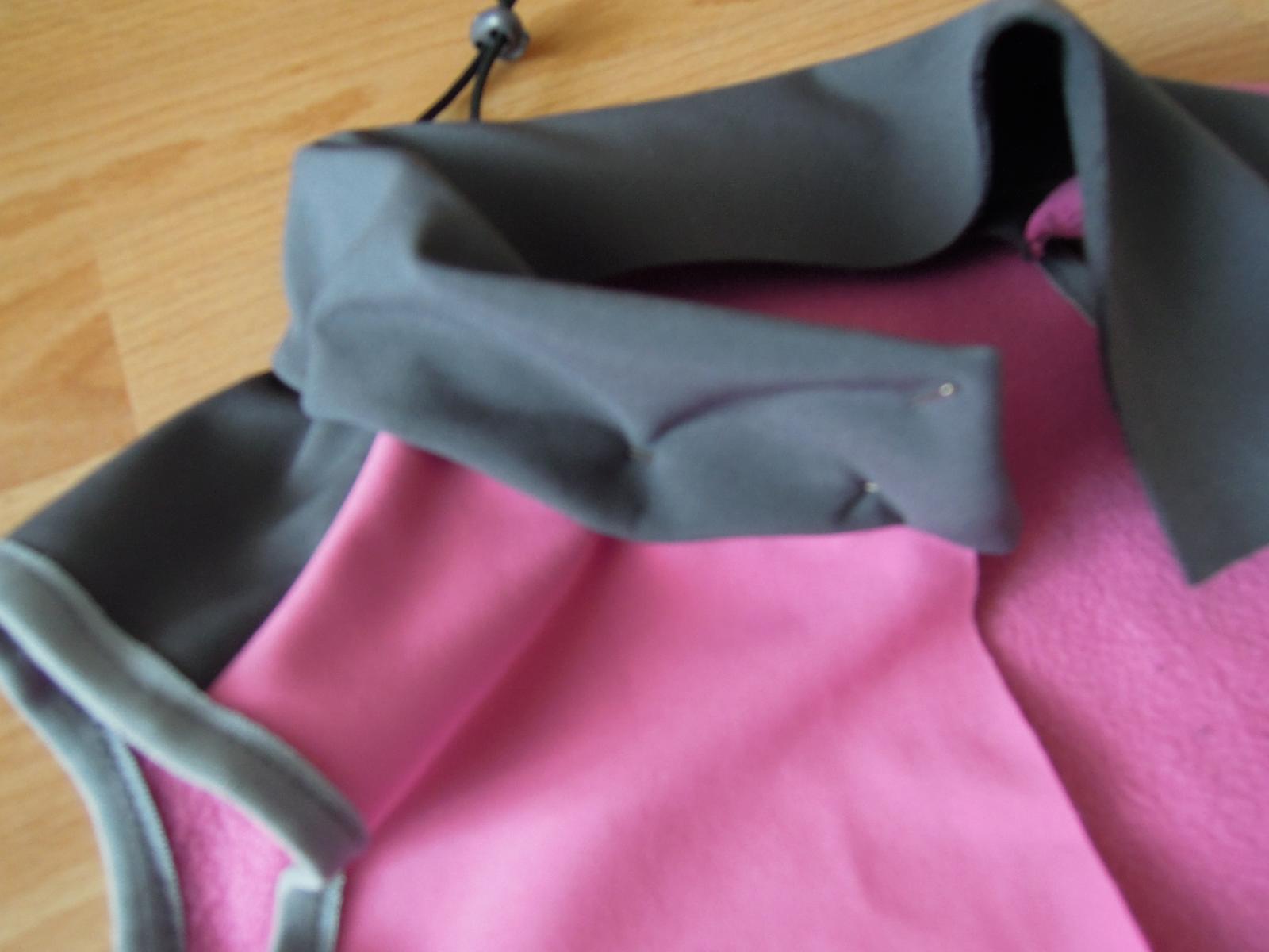 Holky potřebuji radu k softshellové vestičce pro dcerku. Mám ji rozešitou už jenom zip a límec. Abych zvolila správnou délku zipu, tak jsem si límec našpendlila stejným stylem jak ho budu šít a nahoře se mi kroutí. Potřebovala bych poradit něco aby se nekroutil. Napadlo mě: