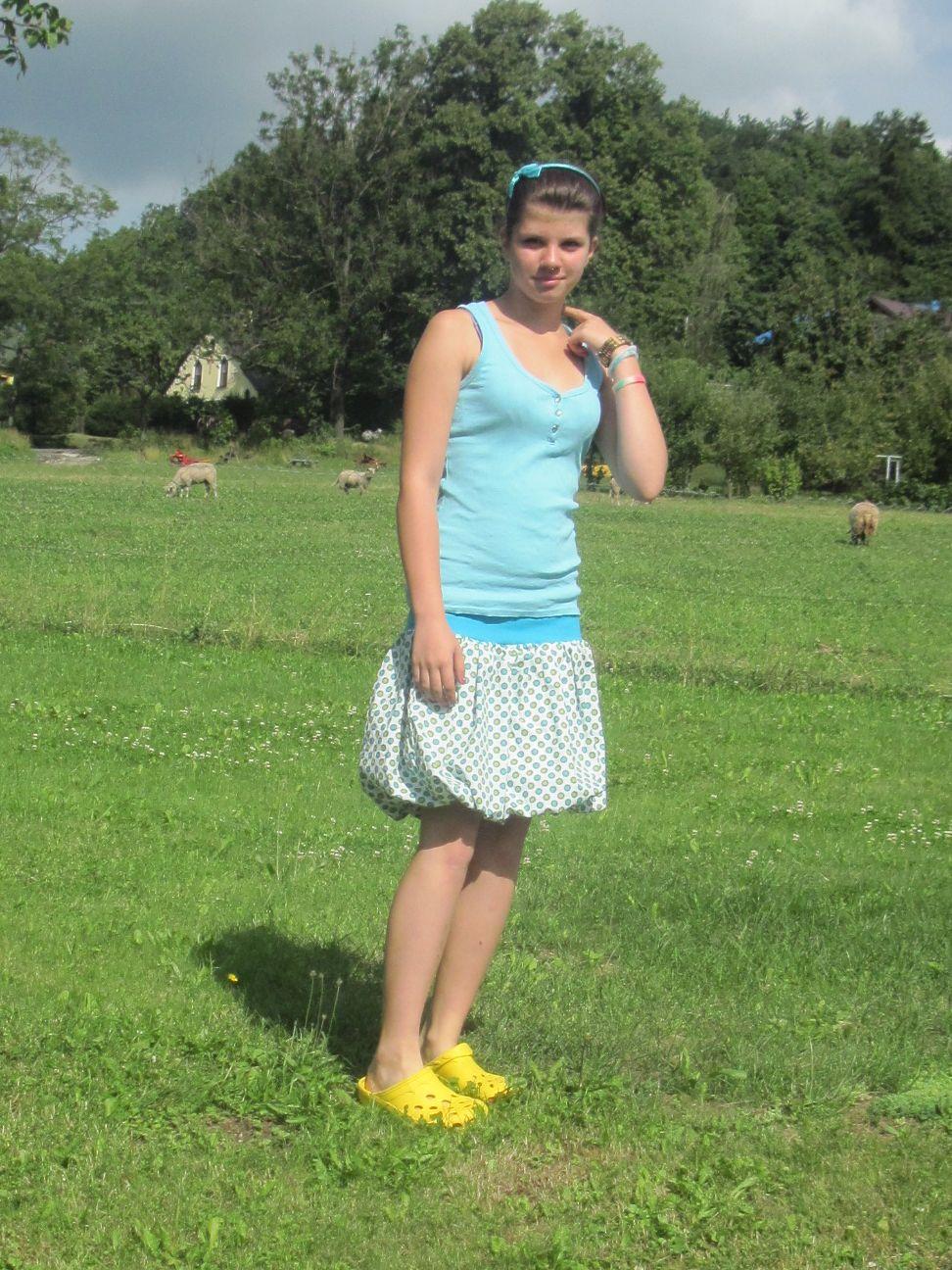 U nás šila, pletla, háčkovala babička a teta, já jsem začala se šitím v sedmé třídě, kdy bylo šití v osnovách 🙂 Pokračovala jsem na střední, pak dlouho nic a pak jsem si pořídila svůj stroj i OL. Teď leží ve skříni, než se prcek umoudří trochu se spánkem, zatím toho moc nenaspí.