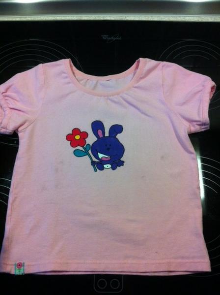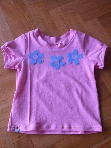 Cca před měsícem jsem sem dala triko s aplikacema z krepžoržetu, o kterém jsem básnila, jak je na tyto kytky super...po asi patero vyprání tam smutně visely jen tři chlupy, všechno se to vytřepilo ven 🙂 . A taky byl moc volný rantl okolo krku...takže dnešní renovace trička dopadla takto. Ještě to musím vyprat, mám tam fleky od průklepáku 😉