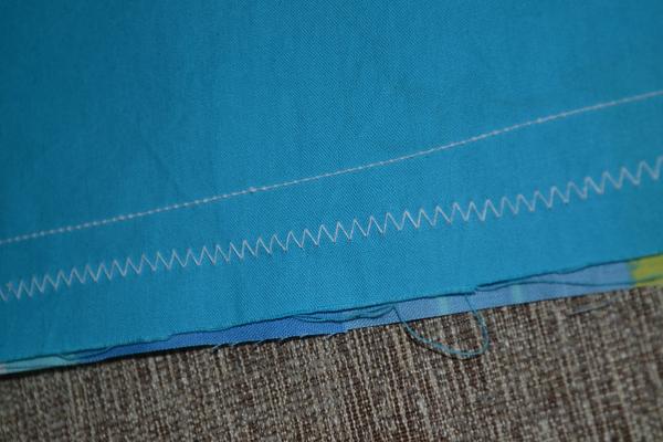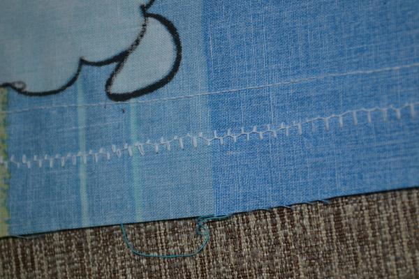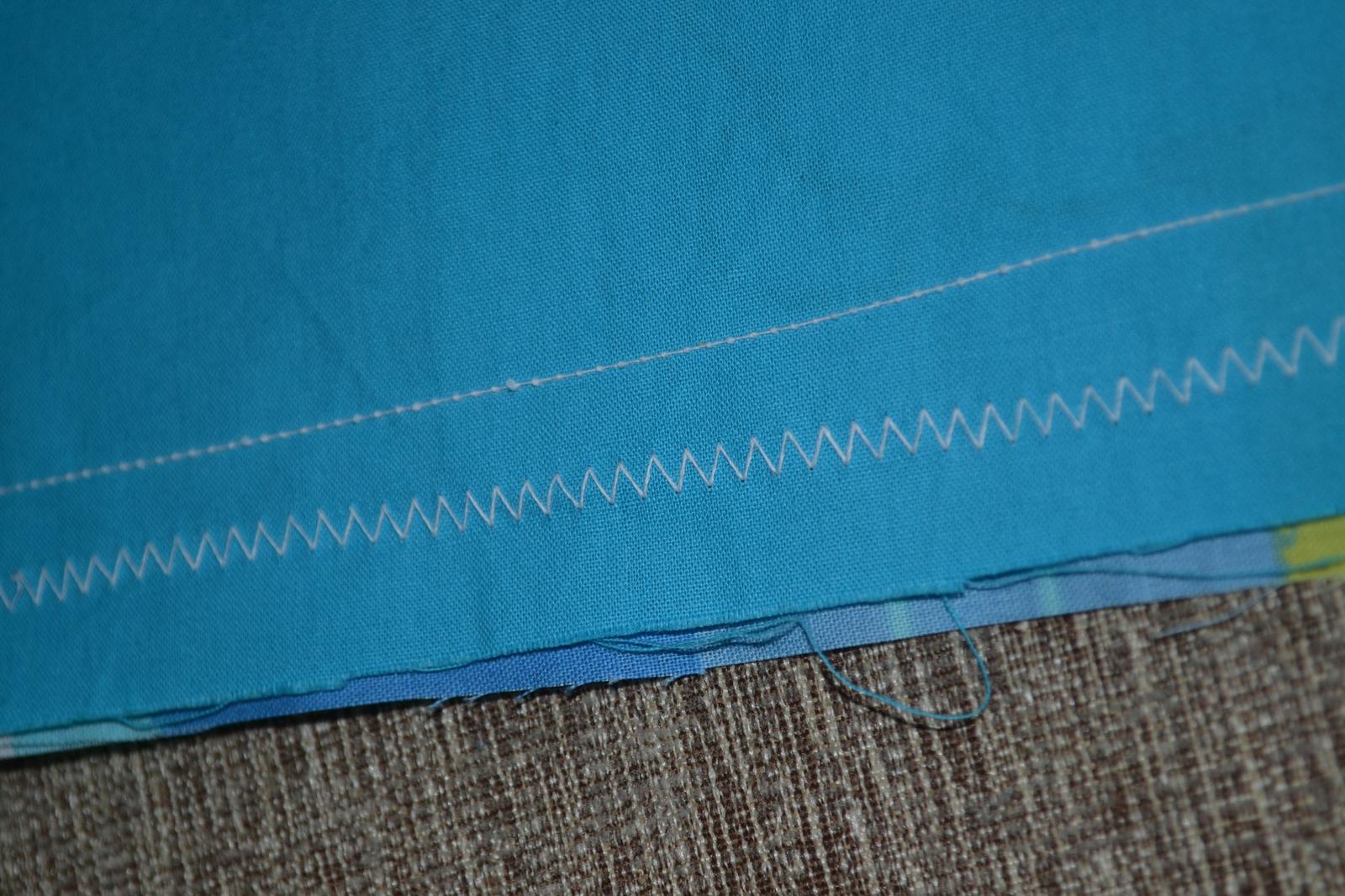 No pro ukázku toto je vidět při entlování; na první fotce látka zespodu, ale na druhé zhora je ten steh úplně rozjetý...