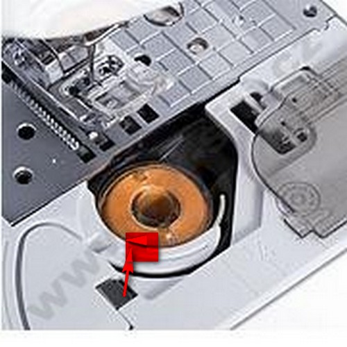 @veronikahan zkus ještě jednou navlíct spodní nit, pořádně to utáhnout při provlíkání směrem ven, aby se ta nit dostala za takový háček či co to tam je - při šití pak ta nit jde přes to, občas se mi podaří to málo utáhnout, vyvleče se to a pak to špatně utahuje. Snad to bude vidět, na obrázku jsem udělala červenou šipku, kudy ta nit musí jít. (oprava, vidět to není, pokusím se to zvětšit)
