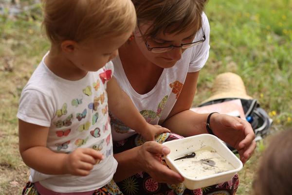 Dnešní den byl na mašli, takže nestíhám ani dočítat. Ráno očkování, Dr. měl 14 dovču, takže fronta na hodinu, pak obejít všechny nutné obchody, poštu, vyzvednout látky od @ngvadi na poště 😎 (díky!), potápění v bazéně u nás, ENTOMOLOGICKÁ VYCHÁZKA (jasmí byla nadšená, pijavice byl nekompromistně i přes skvělý výklad Prof. RNDr. Lubomíra Hanela, CSc. HAD, Mína se smála asi půl hodiny tomu, jak mu "had" zdrhá z mističky a emigruje. Nebála se jako jediná (mimo mne: ) na pijavici sáhnout. V noci jsem žehlila motýlková trička, abychom byly oblečeny opravdu "vhodně" 😀 Pan Hanel miluje vážky, ale to měla tričko jen Jasmínka, musím nám na příští entomologii vážkový komplet. Byly jsme tam asi jen na hodinu, ale moc jí to bavilo, příště půjdeme na celé, řekla bych, že jí to bavilo víc než ty učitelky, co to pro ně ekocentrum organizovalo 😀 Ale teda cesta strašný, samé objížďky, uzávěrky a kombajny, jsem se zařekla, že nikam nikdy autem už nejedu 😝 .