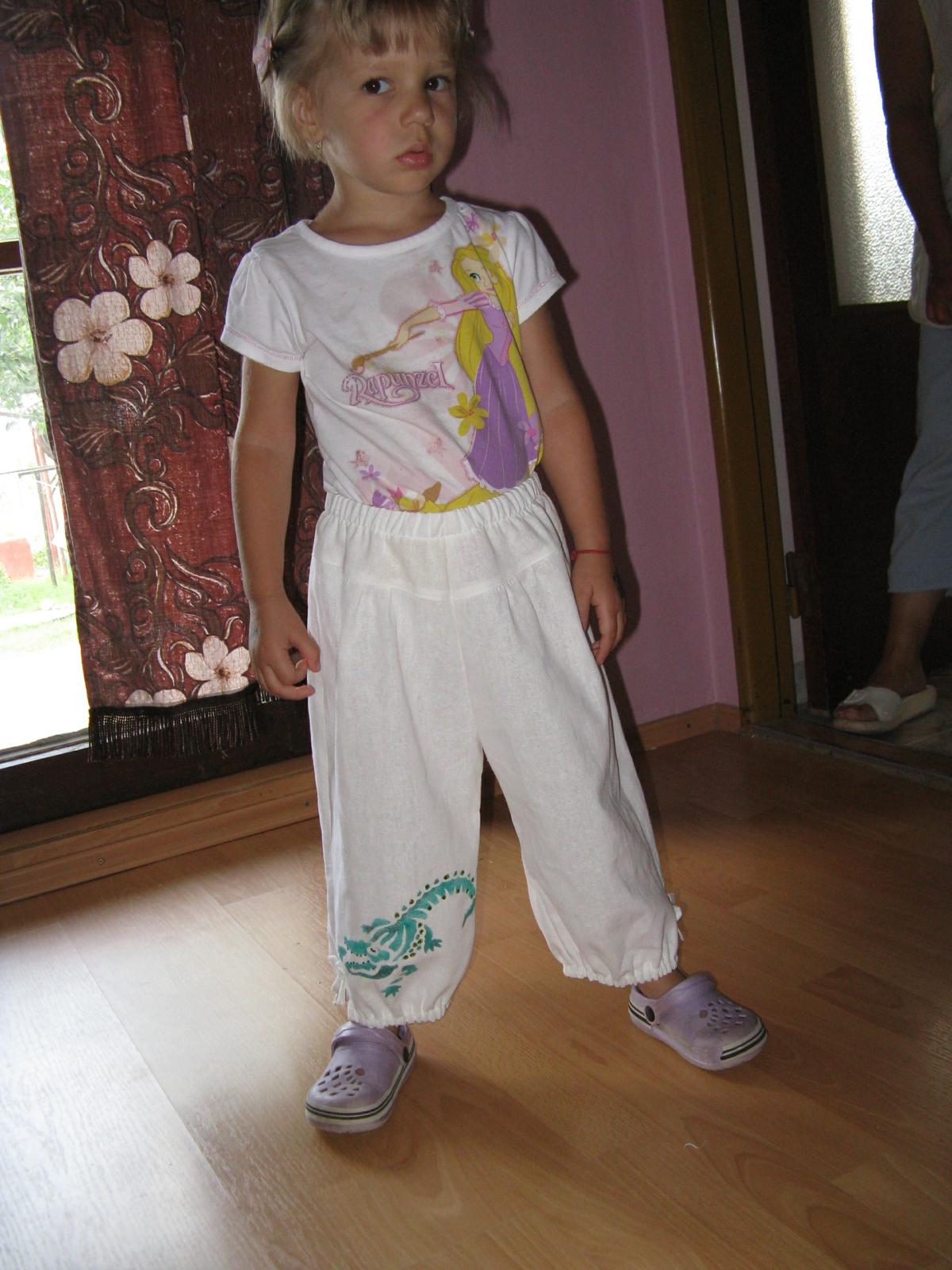 mala som klasický strih nohavíc, dokreslila som si tie diely, čo treba, rozstrihala na príslušné časti, jeden časopis som dostrihala, kým som všetko napasovala, ako som chcela, ale na začiatok som šila iba z monterkoviny... ak budú dobré, tak z toho chcem aj menčestráky, aj rifle