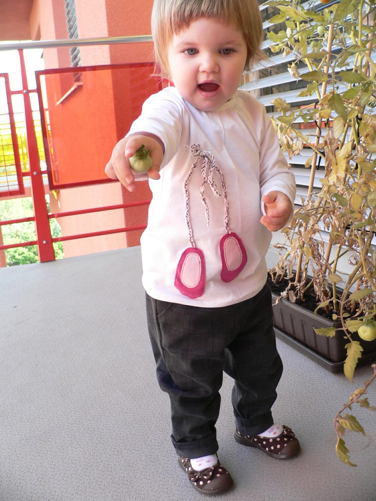 Ahoj holky, hlásim sa po nejakej dobe zase so šitím. Dva dni za strojom a strašne ma bolia kríže, asi som už stará či čo 😒 To druhé tehu by som už vo vyššom veku asi nedala. Vobec nechápem ako som s tým pupkom prvýkrát zvládala prácu, niekedy aj 3 hodiny za operačným stolom a koľkokrát telocvik pri UTZ s velkými psami 😖 No ale niečo trochu už jesenné, recyklované nohavice (ešte trochu dlhé, ale budú aj na druhý rok) a tričko dadka pre Elišku...