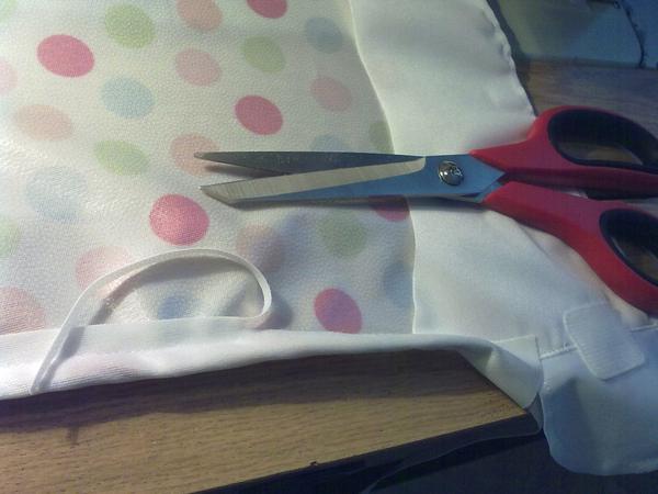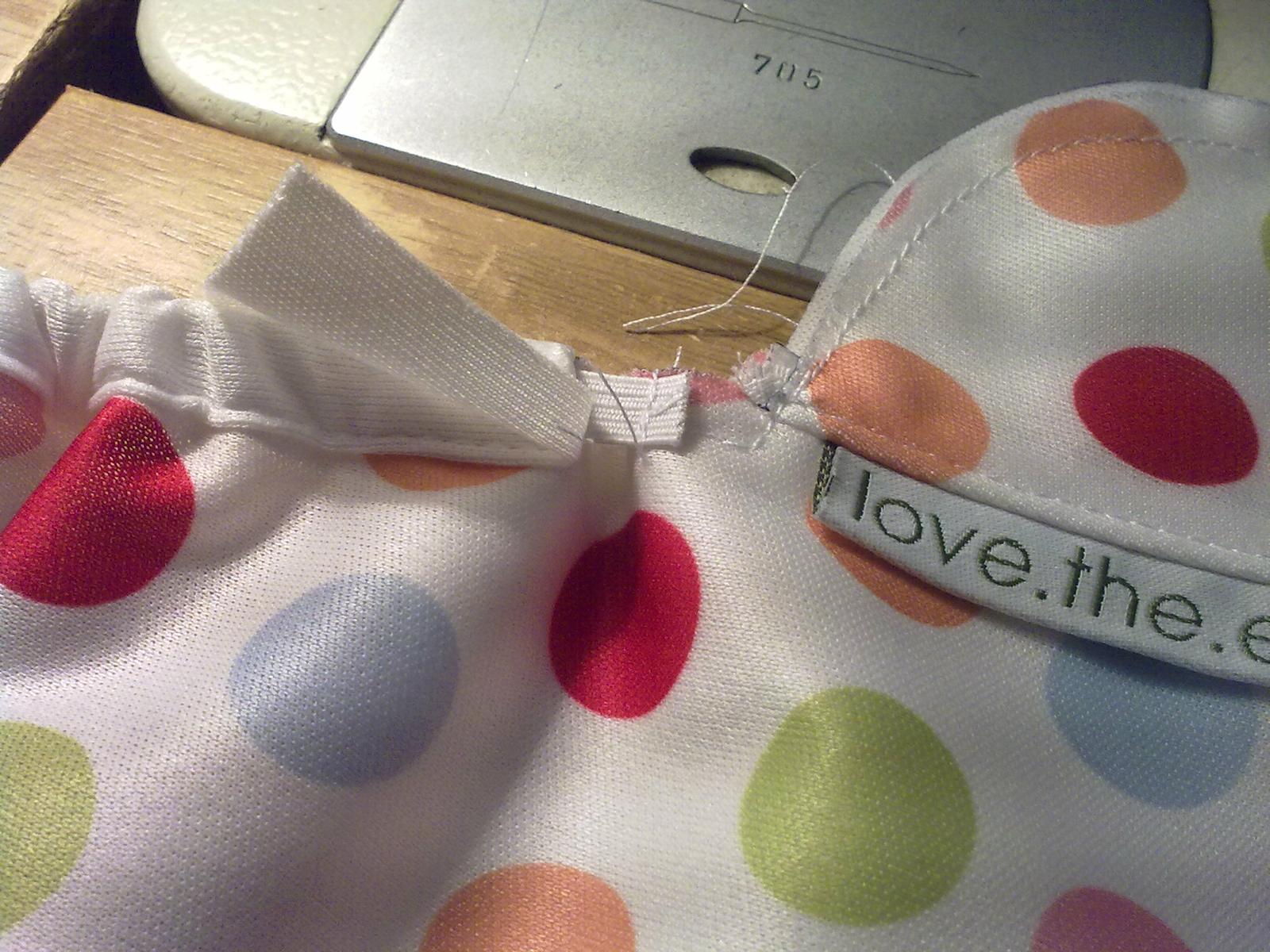 6. Priblizne 2cm pred koncom elastickej casti skoncim - odstrihnem nit. Z opacnej strany odstrihnem zvysok cca 2-3mm od svu.